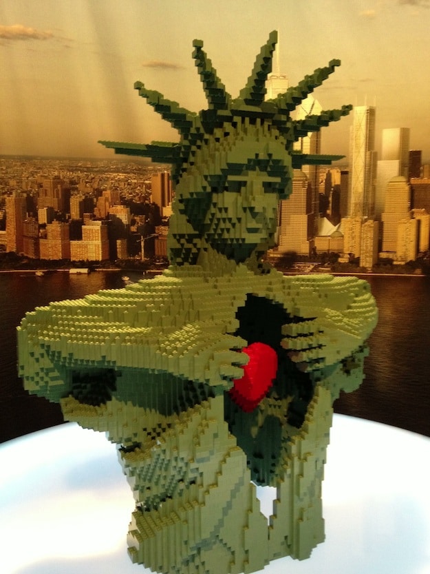 Continue your journey and walk through an alcove with a New York panoramic landscape wrapped around a LEGO Statue of Liberty as she opens her chest to reveal a red LEGO art heart suspended inside. It’s stunning, and it’ll open up the world to you. Sawaya says that “art nurtures the brain.” This exhibit reminds us that play is a beautiful thing, creativity should be celebrated, and Sawaya is the reigning wizard when it comes to the fine art of the brick.