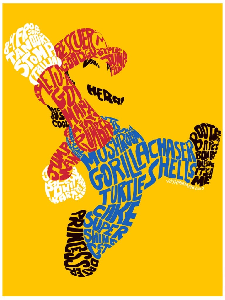 There is no mistaking that it is Super Mario and Megaman that you are looking at even though these two epic heroes are created with only words. Sometimes typography is saying more than an image that supposedly tells a million stories. However, these then have to say a million and one I reckon. Either way, it’s truly inspiring and creative work if you ask me.