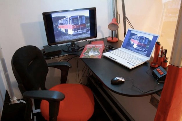 We don’t often get to see old buses refurbished into anything new, so this is really neat. A man in Hungary took that section of the bus and gutted it. He then gave the old bus a shiny, new red paint job. Then he put his home office necessities inside along with some matching accessories. It all comes together quite nicely to make a pretty sweet little office area which takes up very little space in his bedroom. Perhaps this will inspire you to add some personality to your own home office.