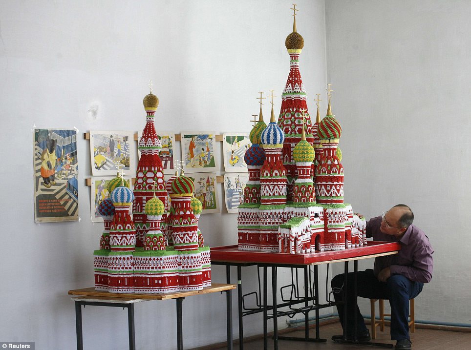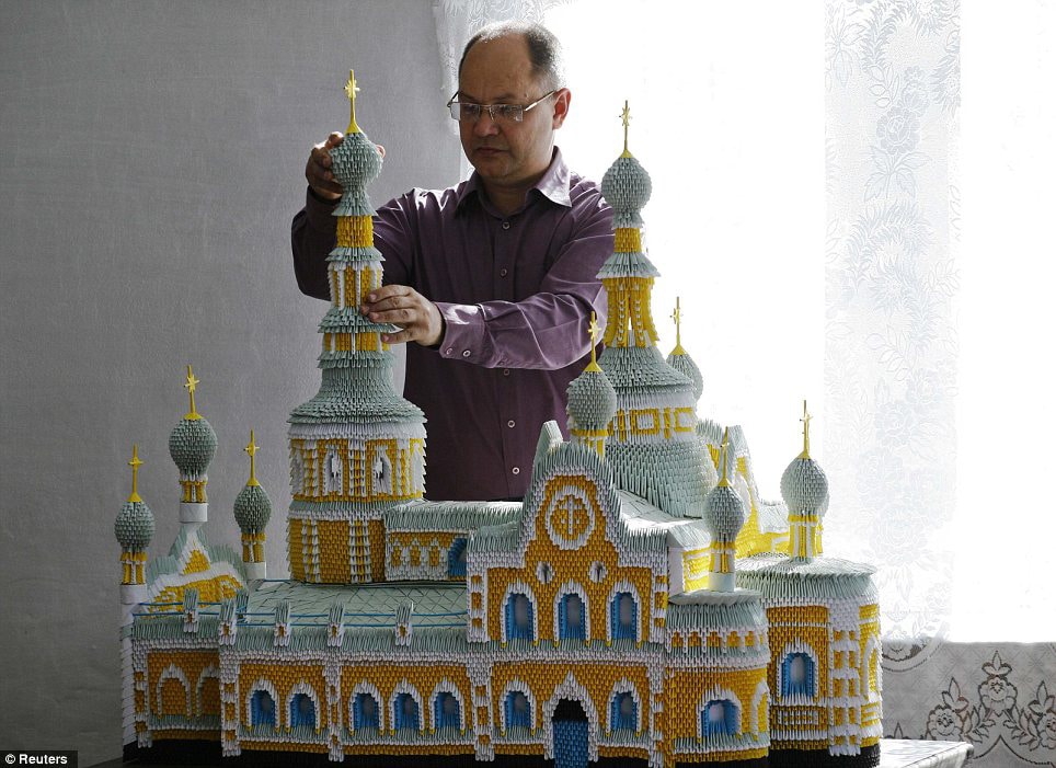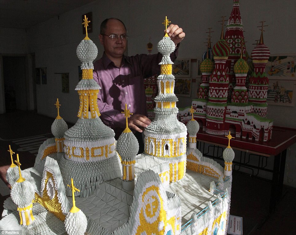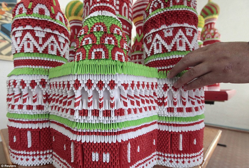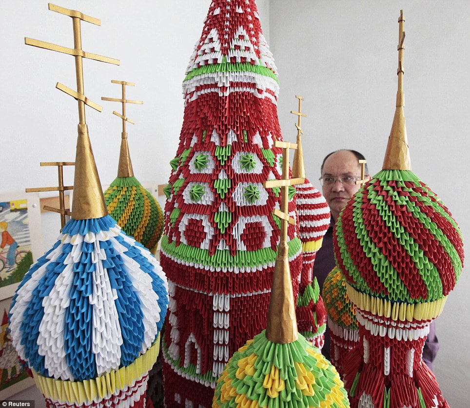 Sergei Tarasov will now forever be known as the man who built Moscow from paper. He used well over 100,000 sheets of A4 paper to build many of the main historic Russian landmarks in and around Moscow in the form of origami models. Just to give you an idea about the scope of this, he built the Saint Basil’s Cathedral, and that one structure alone is made up of about 60,000 separate paper folds. He puts them all together kind of like he’s assembling a puzzle. He is currently working on the Kremlin and a few others.