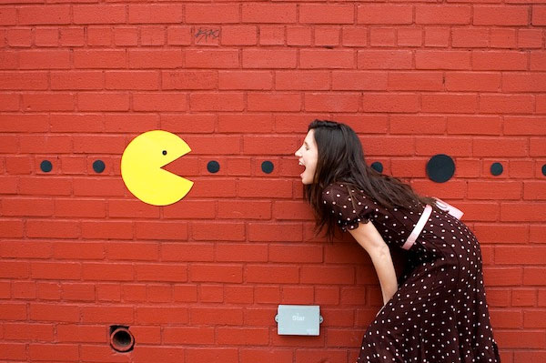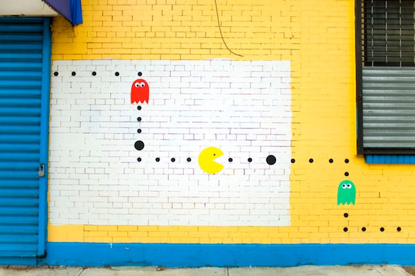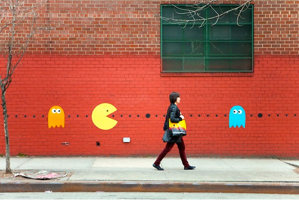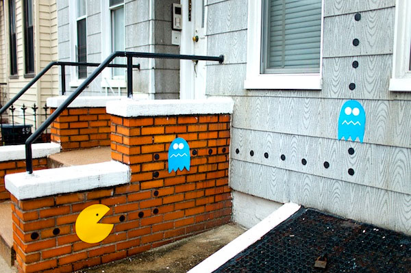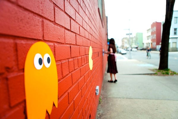 When Katie Sokoler, a photographer, designer and street artist from New York was feeling creative and adventurous a few weekends ago, so she decided to set up a real life Pacman game on the streets of Brooklyn, New York near her apartment. This cute Pacman art is just simply made out of poster board and tape.