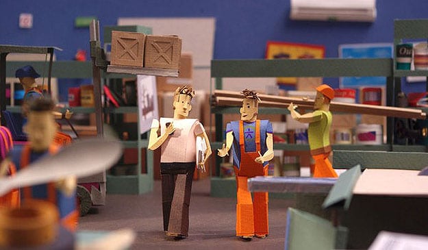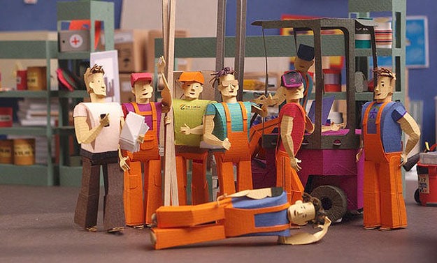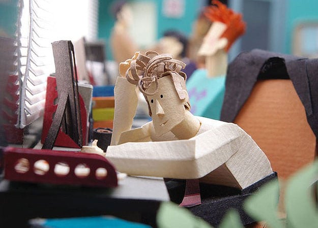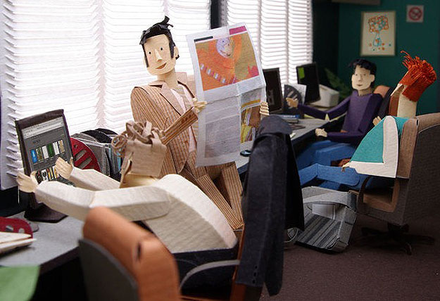 Well, it seems People Too, which is made up of Russian artists Alexel Lyapunov and Lena Ehrlich, are at it again, and this time, they’ve outdone themselves once more. In this collection called “Factory and Office” they depict just that, a factory and an office. Every detail is accounted for, in paper, everything from the cell phones in their hands, the frazzled looks on their faces and the muscles in their arms. It is all right there, and once again, I’m astonished. Enjoy!