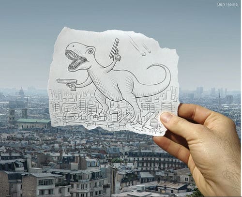 While browsing through the web, I came across some wonderful photo artworks that literally made me drool. They are amazing works of art by Ben Heine. He combines photos with pencil drawings and superimposes the drawings onto the photo. The collection shown here is part of his “Pencil vs. Camera” series. I absolutely love them!