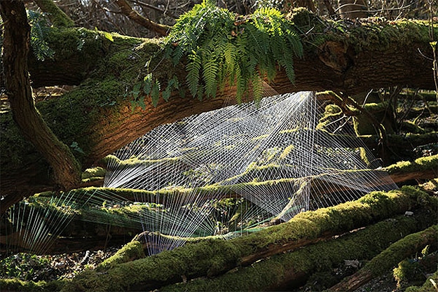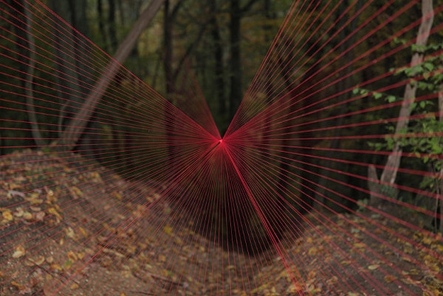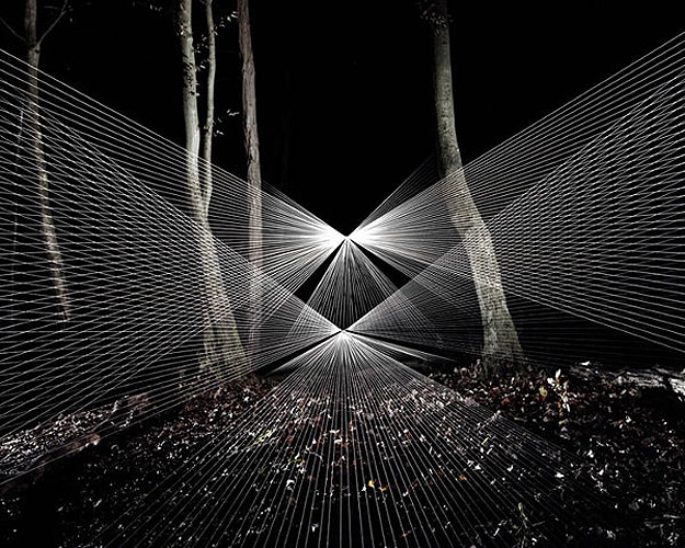 After stretching the thread in the forest between the tree branches very precisely, he places the light in just the right place. Then he takes his photographs. The end result is these stunning images below. Sometimes he is able to work with the sunlight to achieve the look he wants. Other times, like in his series called “Nocturnes,” he works at night and uses night photography to capture the right look for the photograph. When I first saw these, I thought they were the work of a photoshop artist, but they aren’t. They are simply stunning works of art, sometimes called thread sculptures, created by a patient, talented, inspirational artist.