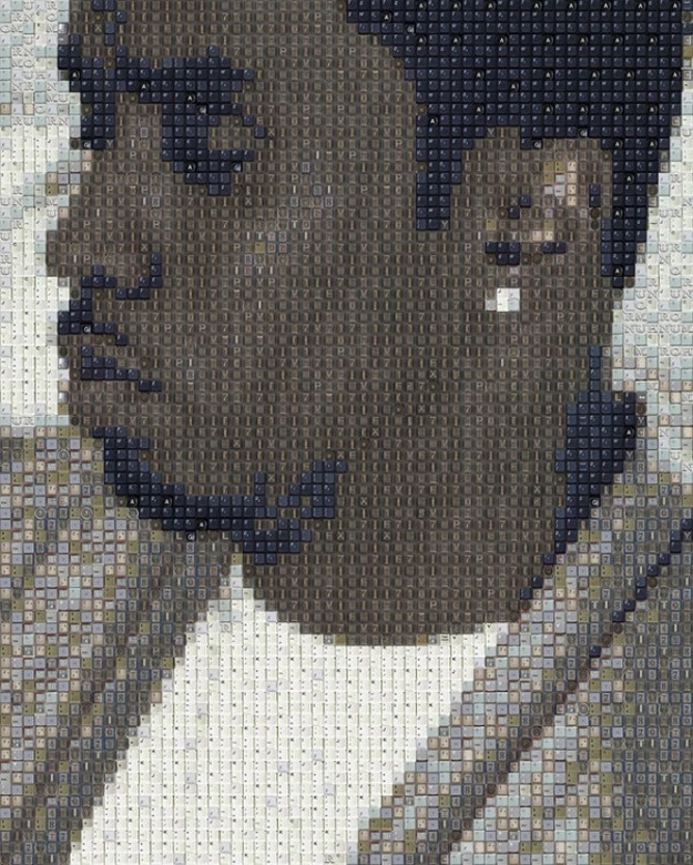 What truly makes these portraits unique, other than the medium, is the way you almost forget that each pixel is an old key that people have been typing and hitting for years before, maybe writing blog posts about artists and singers as well. I personally found it difficult to choose a favorite among these portraits, as they are all wonderful. The choice of people is also extremely varied since you have the Big Bang Theory stars along side Nelson Mandela, Jay-Z and Puff Daddy!
