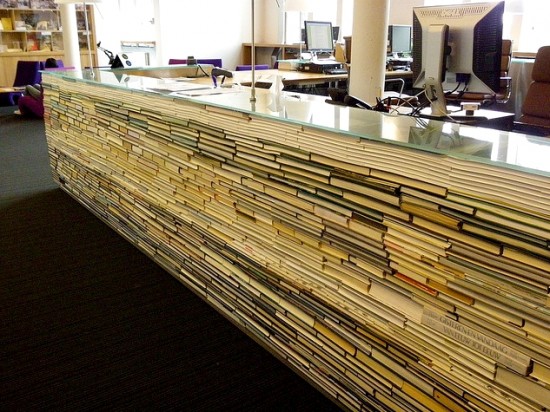 So what should we do with all those paper pages bundled into bricks of knowledge? Well, we could follow TU Delft Library’s example and create one of the most awesome front desks you have ever seen. It’s entirely built with unused books, and it works as a storage space as well as an inspirational front desk.