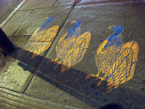 Image Credits: [Roadsworth] [North American Footprint] [Screwed] [Hanging Bat] [Vulture] As They Appear