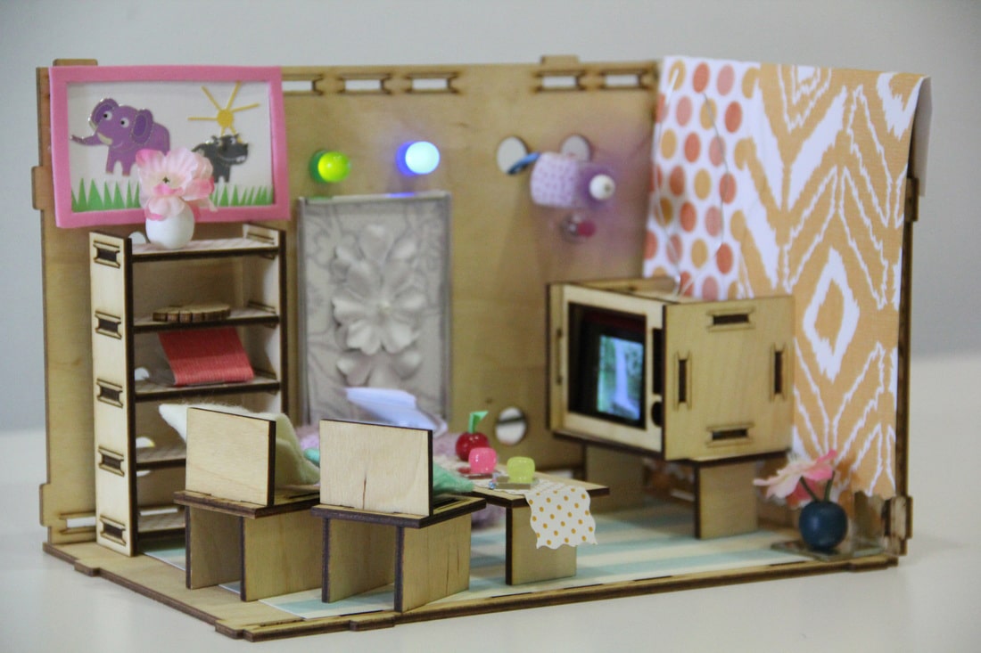 When I was a kid, my sister put her foot through my dollhouse. It cracked down the middle. Needless to say, my soul still bears the scars of that moment. If I’d had an alarm for the dollhouse, perhaps connected to a few high intensity lasers, we’d all be sitting around telling a different story, wouldn’t we? <Insert evil laugh here>. Now, for those kids and adults who really want some electricity with their dollhouses, there’s a Roominate. Roominate will electrify your child’s play.