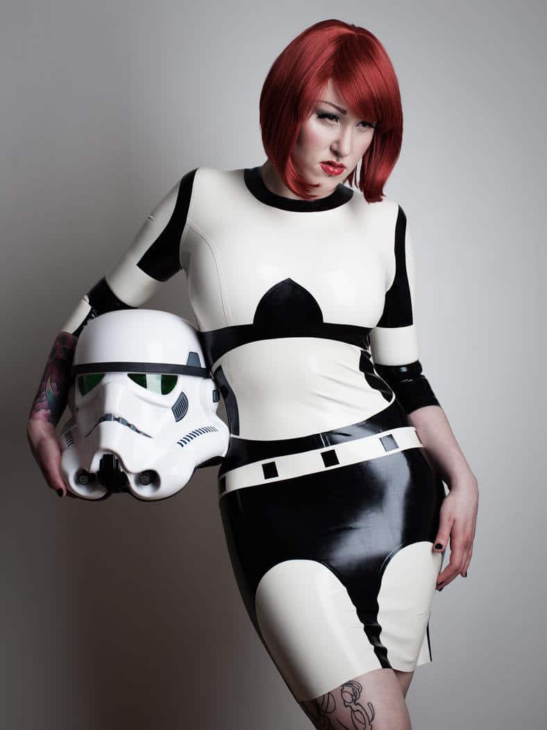 If you are a fan of wearing very tight latex that sticks to your skin so closely that you can barely breathe, you are going to love this. If you’ve got the body to pull it off then why not, right? Last year I wrote about a Super Mario Latex Costume, and now we’re back with three more. Today I’d like to show you a stormtrooper dress, a Wonder Woman outfit, and even an R2-D2 bodysuit, and they are all made out of latex rubber.