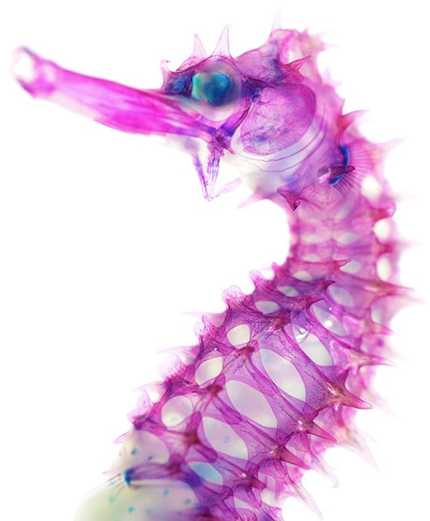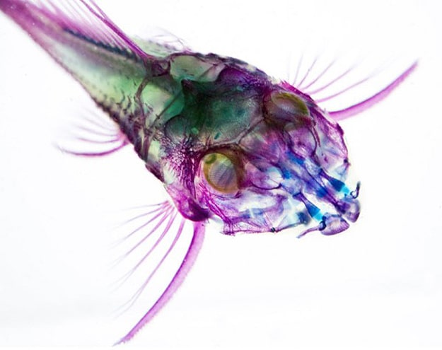 These images below are not photoshopped, and they can take up to one year to create. Lori Tomita, a former fisherman and Japanese artist, preserves and stains these animals in a series he calls New World Transparent Specimens. He removes the scales and then allows the body to break down by soaking it in a digestive enzyme called trypsin. He stops the process when the inside of the animal becomes transparent and then stains the muscles with different colors of dye. Just like in a regular lab, the process involves formaldehyde, potassium hydroxide and glycerin. Lori says, “I want to show people the hidden side of natural beauty that they might miss out on ordinarily.” His preserved fish are on sale in Tokyo at the Tokyu Hands department store just in case you happen to be there and want to pick up one of these beauties to take home.