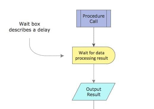 As you know, there are times within an organization when workers need to await instructions or data from one department before proceeding with their own duties. To indicate this sort of action in a flowchart, the delay symbol is employed.