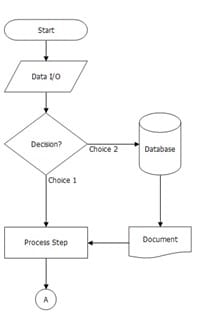 The circle-shaped symbol is typically small and is used as a Connector to show a jump from one point in the process flow to another. They’re also known as the connector symbols. Connectors are usually labeled with capital letters (A, B, AA) to show matching jump points. They are handy for avoiding flow lines that cross other shapes and flow lines.