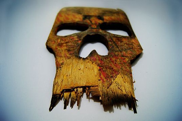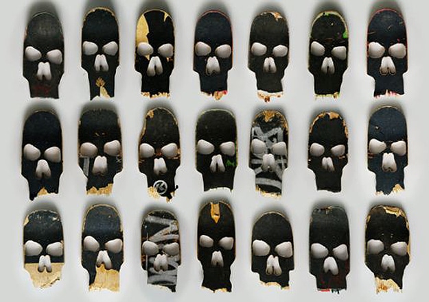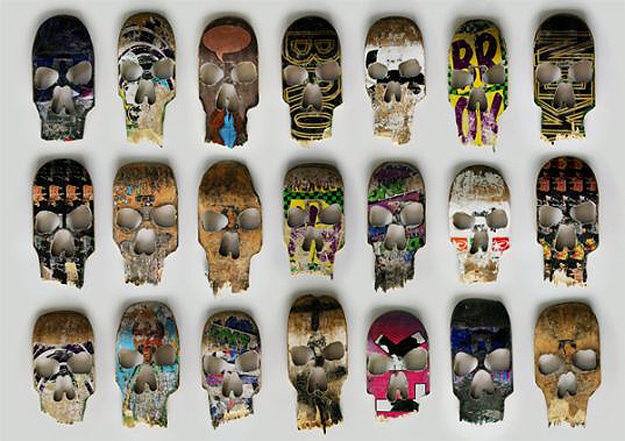 He carved scary-as-hell skulls out of broken, discarded skateboards, applied stickers with the store information onto each one like a business card, and then left them all over town in Curitiba, Brazil.