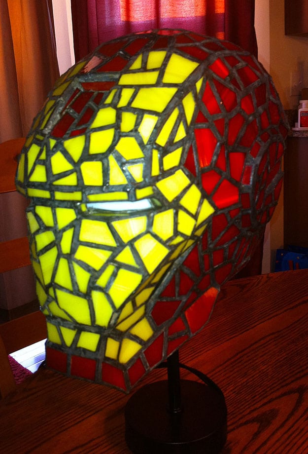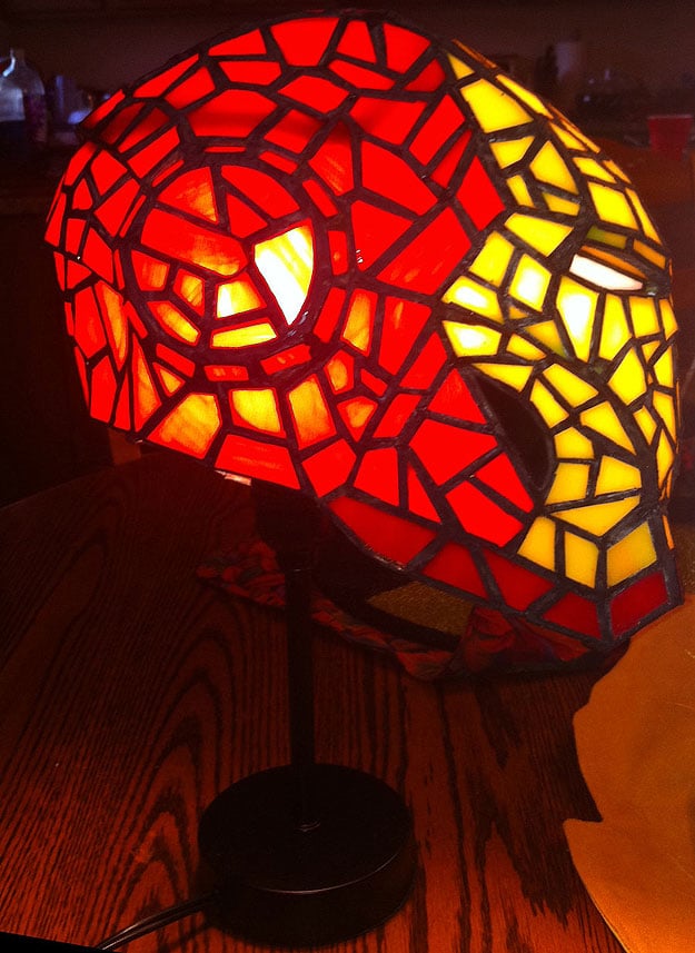 I wonder how long it took him to make this. I can imagine having a whole room filled with his stained glass superhero creations. I could picture a beautiful green and purple one for Hulk and a red, white and blue one for Captain America. What a gorgeous way to light up a room! I’ve always heard the ambiance of a room is determined by the lighting, which is why a lot of people choose a collection of lamps instead of a standard overhead light attached to the ceiling. With a lamp as unique as this, I can see how that would be true. The colors just pop. Michael, you got some serious skilllz!