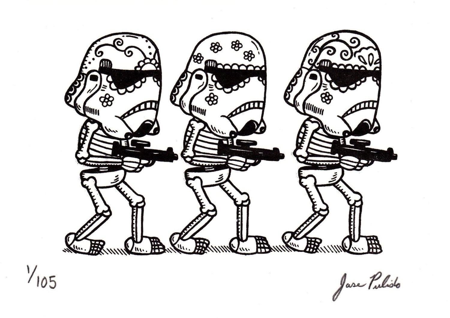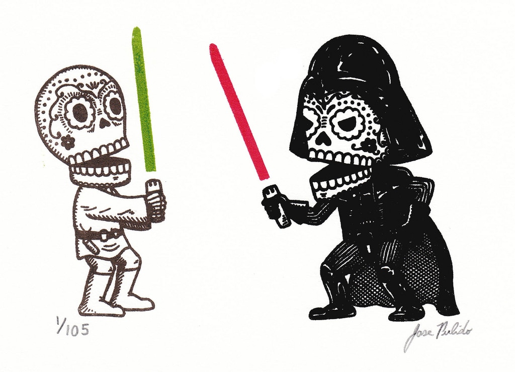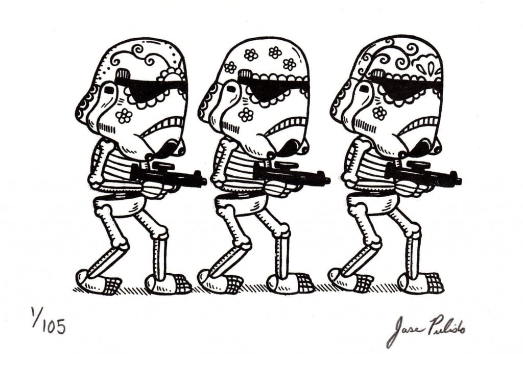 Even though I am not accustomed to the Mexican Traditional Art, I kind of like it. Or, I haven’t yet made up my mind about it really. Right now I like it but the morbid nature and creepy Halloween feel of death in disguise has never been the melody of my life. However, all creativity is inspiring creativity and this certainly is creative. Yet once again someone introduces a new chapter in the story of bizarre and wonderful incarnations of the Star Wars brand. Once more I wonder what George Lucas would have thought if his storyboard artist would have showed him these instead of those legendary drawings that pop up on the Internet every now and then. They are amazingly creative and “creepingly” morbid. You can even buy these pieces of art over at Jose’s own Etsy Shop!