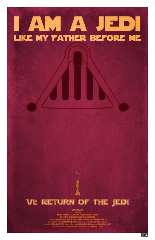 Posters don’t have to be all elaborate and busy like the ones during the 80s. They can be slim and very minimalistic in style and still make a huge impression on me. Jon E. Allen has a way of really capturing the essence of the objects he makes posters of, and his Star Wars posters are no exception. With very few lines and colors, he manages to capture the very true magic of the whole movie in a single yet ultimately awesome poster for each of the original movies.
