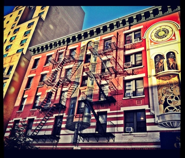 I often wander the streets of New York looking at my feet, headphones sprouting from my ears, lost in thought. But on one sunny day in the city I happened to look up. In front of me, I saw a building that quietly blossomed into something entirely magical when I stepped closer for further inspection. I crossed East 83rd Street on York Avenue on the Upper East Side of Manhattan to find a building with an identity crisis. A street art fantasy was scrawled along the walls and gargoyles guarded fake stairwells on this building that was perhaps empty, happily planted on the corner, enacting its own video game fantasy.