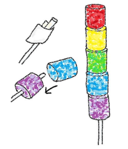 Meaghan Mountford, a writer and cookie decorator, has the cutest blog ever called The Decorated Cookie Blog. She recently made these cute marshmallow kabobs, which I think are perfect for spring. What a great complement to all the colorful Easter eggs and peeps that are so popular this time of year.