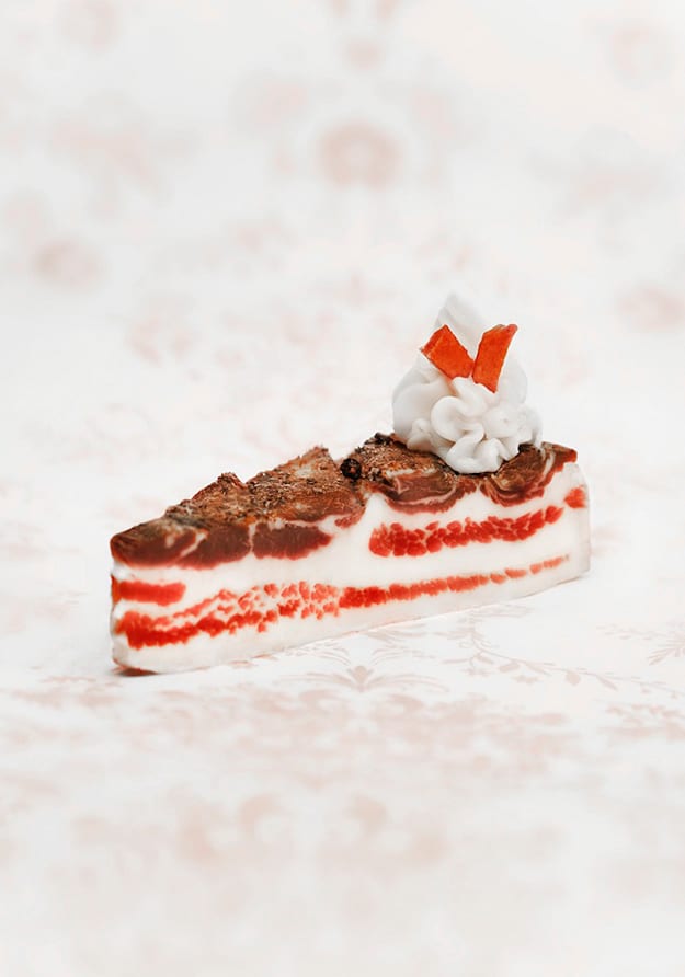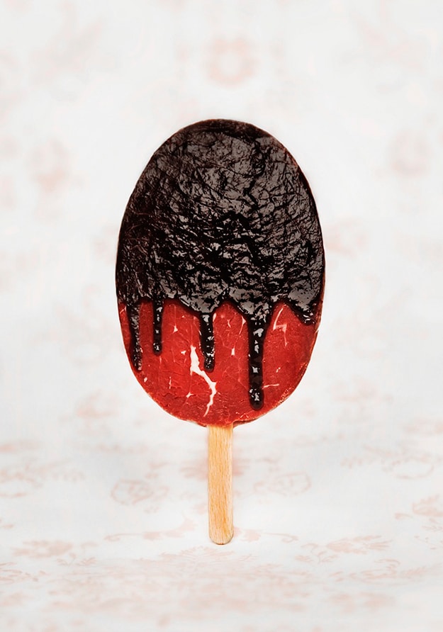You can view more of Jasmine’s work on her website. One thing I was unable to find is what exactly these would be used for. Perhaps it’s just for these interesting photographs. I can’t help but wonder if Jasmine cooked and ate this meat when she was finished making these. Hey, on the bright side, at least they aren’t full of sugar like ordinary desserts.