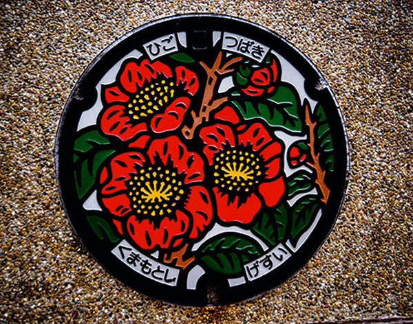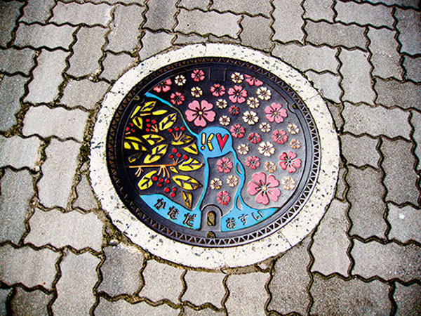 I’ve heard of using a pothole as a prop for creating intriguing artwork. There are some very interesting pictures of that here. However, I’ve never heard of making beautiful art by using a manhole cover!