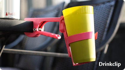 It happens to me a lot. I’m carrying a briefcase, a laptop, a cell phone and my keys. Most of the time, I leave my coffee behind because I just don’t have enough hands. Not anymore! Introducing: The drinkclip. The drinkclip is a cupholder that attaches to your belt. Just clip this to yourself and voila, you can take your coffee with you.