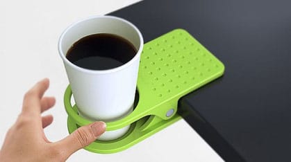 2) This clip also clips to a table – but why would you need it? Wouldn’t you just set your coffee on the table?