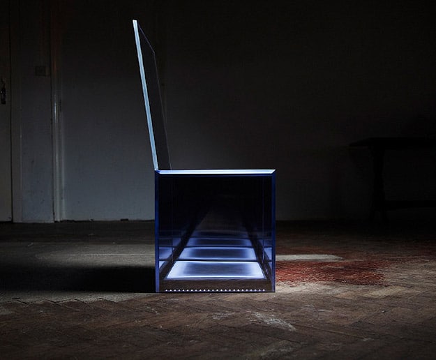 Then, when a person walks towards it, it lights up and creates the illusion of a black hole of space that goes on and on inside. Those afraid of falling probably won’t want to sit on it since it gives the feeling that you’d drop through the seat. There is also an audio component of this chair. According to Ben’s website, “As the sitter comes closer to the chair, the chair’s heart rate increases reminding us that even though it wants to escape, it is firmly and almost painfully stuck in front of us.” He almost makes it sound like a pet instead of a chair. Wow, I like it!