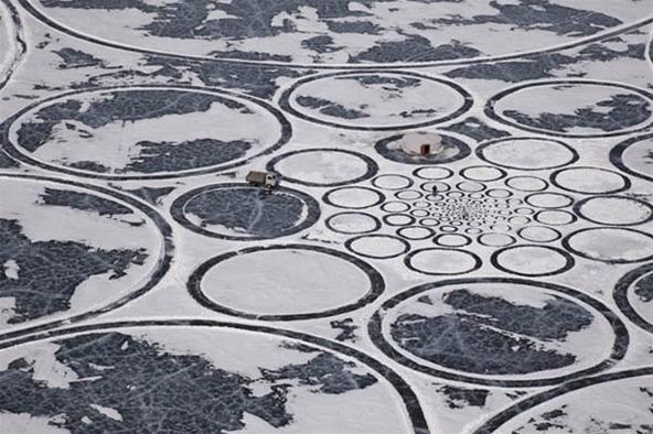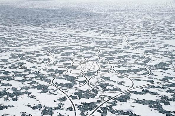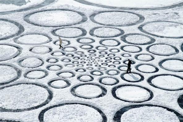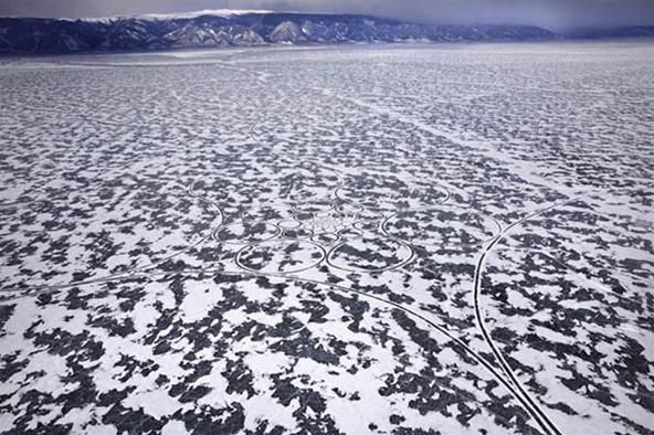 He works on an epic scale, and his latest piece is of geometrical aerial patterns carved into the ice crust of Siberia’s Lake Baikal. It measures an impressive 9 square miles in size. The scale of the piece is just mind boggling, and if you want to experience the artwork first hand and in real life, I suggest that you cough up the money for the rental of a helicopter to take you up for a spin. I am sure that the memory of the view will etch itself into your mind forever.