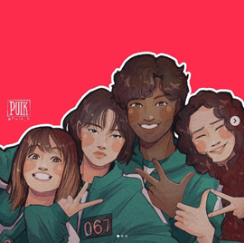 Another popular Instagram graphic artist puik_b also drew members of the cast of Netflix’s Squid Game. Instead of simply drawing the entire cast or famous scenes– she chose specific characters that are close to her heart. Her cute art style amplifies how very much endeared she feels towards the cast and the series itself.