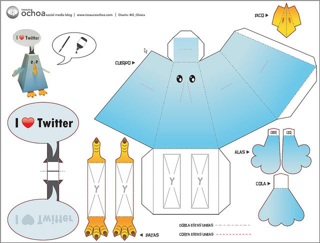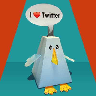 I am, of course, talking about the printable Twitter Paper Toy that you can download, cut out and assemble. It’s a cute yet still cool little fella that you will be able to jump around on your office desk when your boss isn’t looking. Why not ask your fellow co-workers to download, cut and assemble their own and create a whole Twitter Bird Farm while you are at it. I am sure that’s way better then that conference you guys have planned which will only entail embarrassing memories and a couple of headaches.