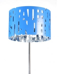 “You cannot create experience you must undergo itâ€Â Quoting from the prolific writer Albert Camus, the lamp is a manifestation of the dualisms of life. A beacon for the human experience the lamp is constructed to be a humble exterior shell teaming with chaotic self reflection. As light penetrates through the voids of the text, it becomes a symbol of the juxtaposition of our own internal concepts of existence and the ones we attempt to maintain on the surface. Continuing the exploration of typography as a means of decoration and structure (Dharma Lounge) the Camus floor lamp creates situations where the participant is embraced by the possibilities of creating a relationship with the object through denotative and connotative ideals.