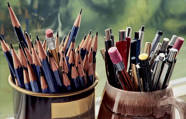 I wrote an article not too long ago about another artist who caught the visuals of life by painting, but I must admit that these are just a tad better. The lighting, reflections, refractions and textures are perfectly portrayed, and Steve must certainly have perfect vision it seems. Real life has never, at least to my knowledge, been captured in such vivid and realistic looking format by an oil painter. My mouth just dropped to the floor, and I am sure when you are done looking through these, you will want to begin at the top for another rundown to process this insanely cool and realistic artwork.