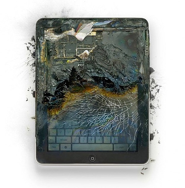 In all my experience with smashing things, it would never occur to me to do it with my Apple products. After all, I love my iPod and my Macs. There is just something about my Apple stuff that is sentimental, and I get attached to them. I have a G4 laptop that I just can’t say goodbye to. I know it sounds strange, and I don’t have the same feelings about my PC. Obviously artist Michael Tompert and photographer Paul Fairchild don’t get attached to their Apple stuff. Michael crushed, destroyed and shot the Apple products below, and then Paul Fairchild photographed them. It was all done in the name of art.