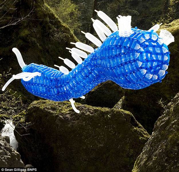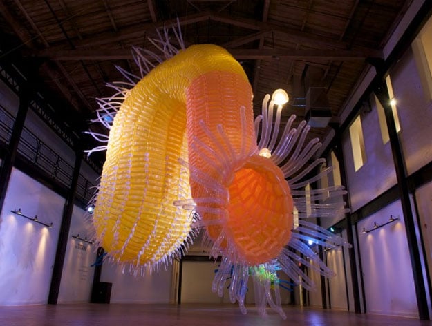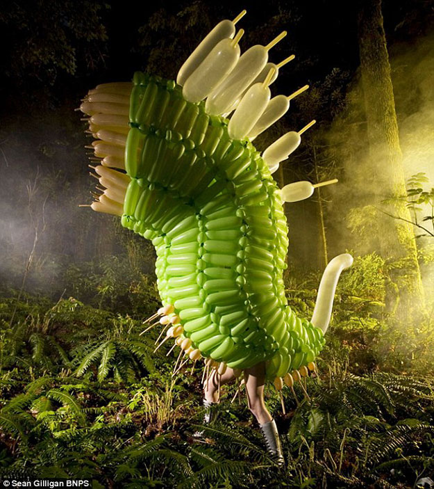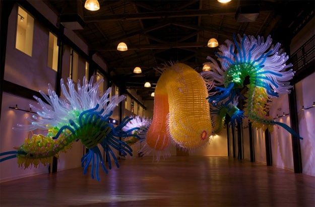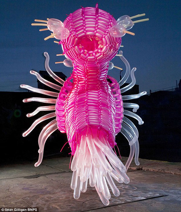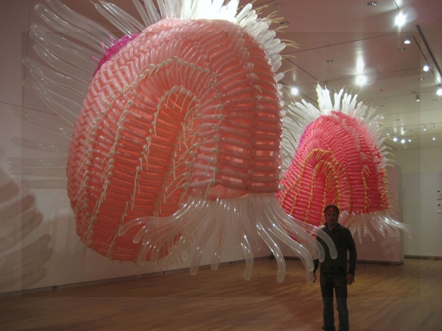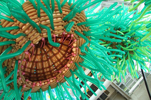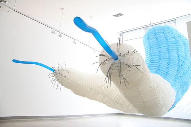 These sculptures, created by Jason Hackenwerth, are so cheerful and happy to me. It’s interesting that I read on the Internet that some people call them scary. I don’t get that feel from them at all. According to his blog, Jason says, “Experiments with latex balloons as an alternative medium have evolved into massive forms akin to painting…” He sometimes uses thousands of balloons for one sculpture. Wow, I remember from back in the day how my fingers would get sore from tying so many balloons. I wonder if he uses a machine for that, probably.