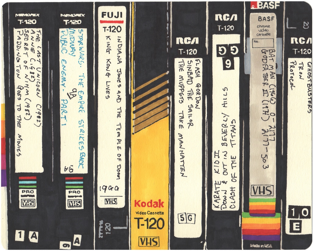 A Tribute To The ’80s VHS Tapes & Games [12 Sharpie Drawings]