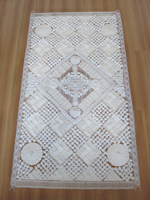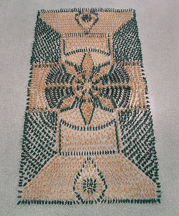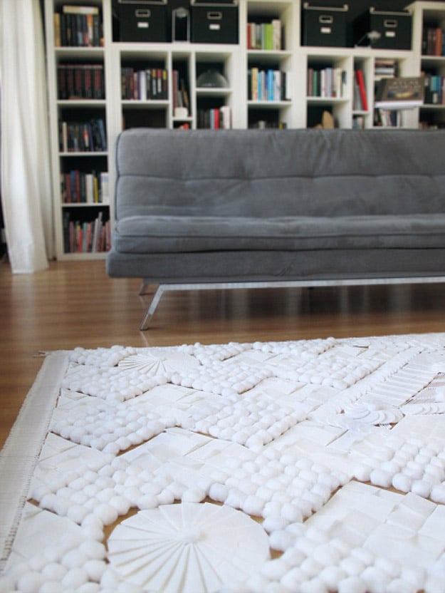 That’s exactly what the design trio of Marcia Nolte, Stijn van der Vieuten and Bob Waardenburg do. To be more specific, they create carpets (like throw rugs) from mundane objects. Of course, these are only art installations. They aren’t the kind of cozy carpets you’d want to lay on the floor to step on in the morning. Why carpets? Good question. I have no idea. These three designers opened a company called We Make Carpets, and their website is full of visual inspiration.