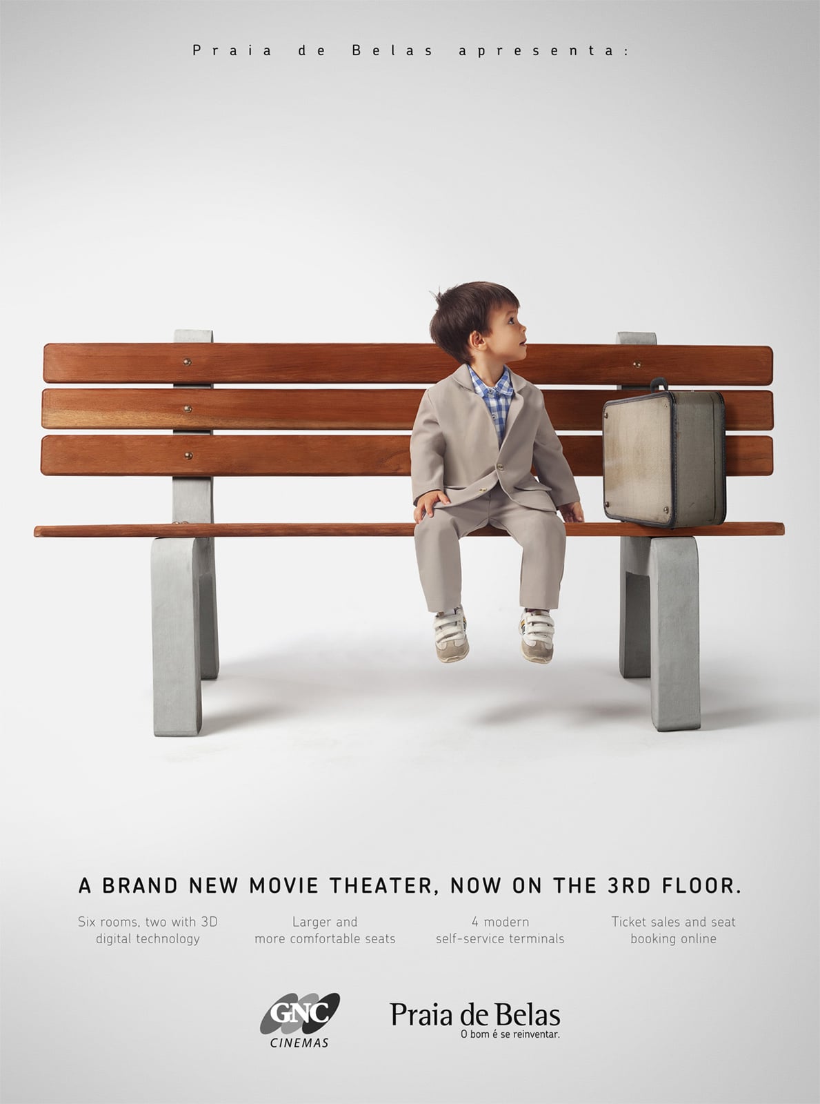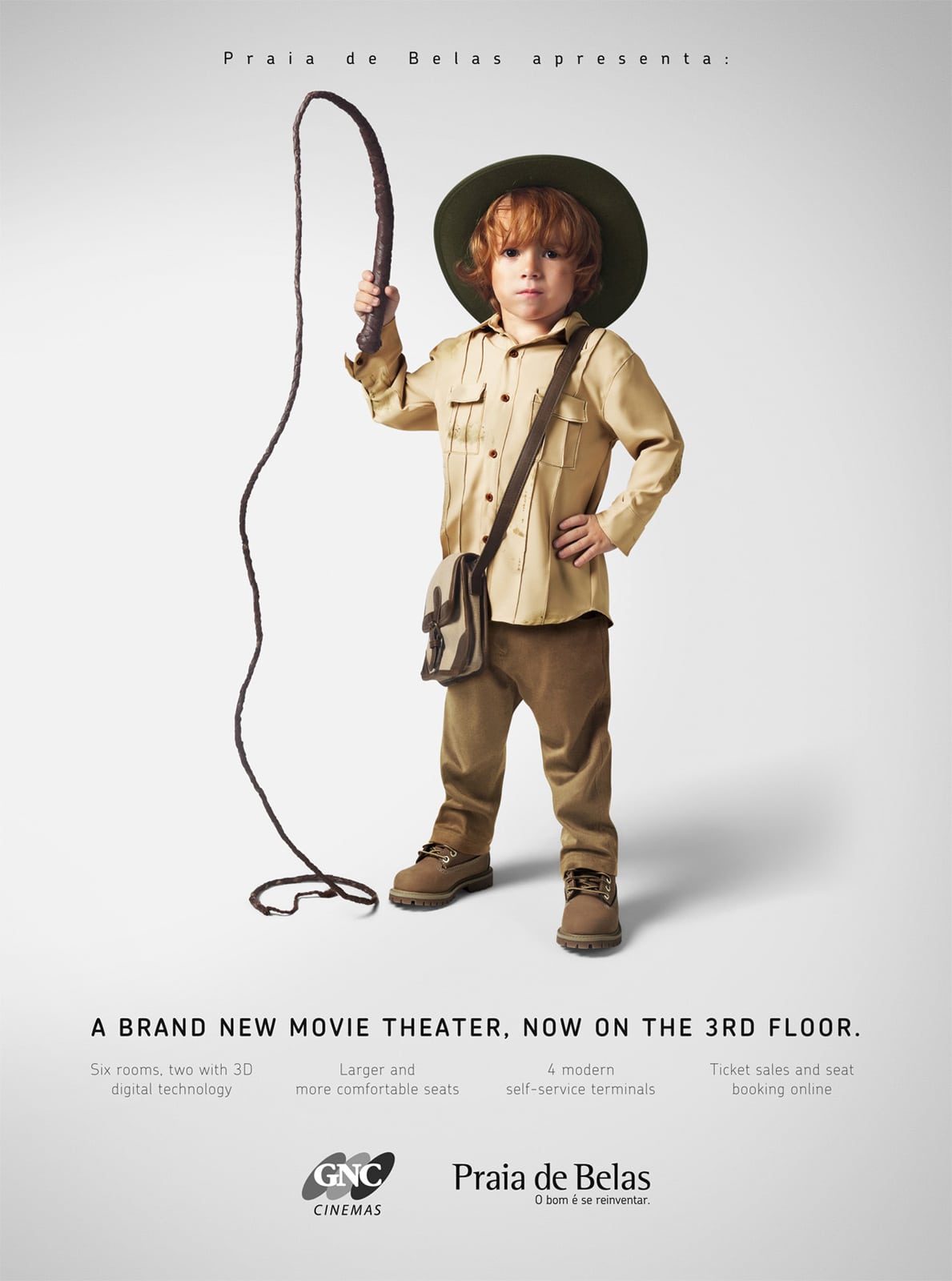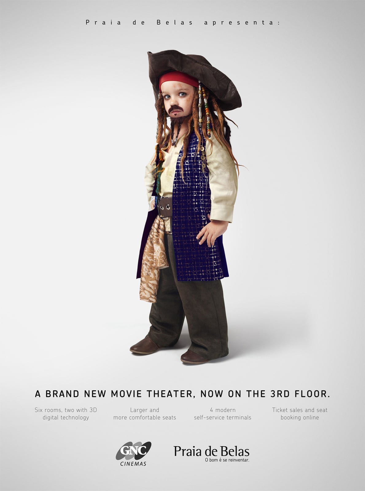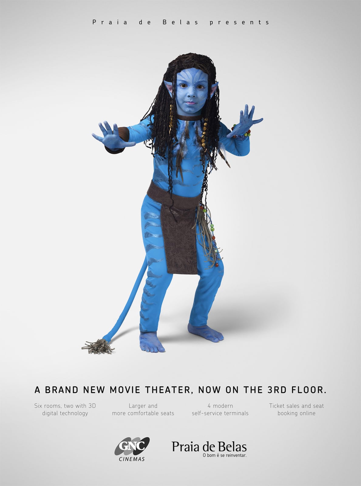 This is all part of a creative advertising campaign for a brand new movie theater in Brazil in the Praia de Belas shopping center. It’s a completely modern theater with all the latest technology and big, plush cozy seats. In order to entice people to give it a go, they had these posted made. You’ll see children dressed as Forrest Gump, Jack Sparrow, Edward Scissorhands, Cruella da Vil, Indiana Jones and even Neytiri. If you are looking for a cute Halloween costume for your kid, here ya go! The attention to detail in each one of these is incredible, and it all comes together to make these kids look exactly like the movie characters they are portraying.