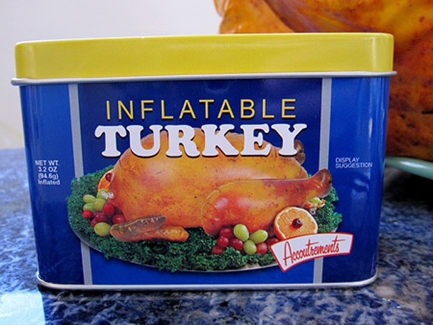 I have the solution for us. Let’s serve this inflatable turkey this year. That’s right, we’ll blow this badboy up, stick it on a plate, and bring it to the dinner table. After everyone has had a good laugh, we’ll pile in the car and drive to the nearest restaurant where we made something much more time saving than dinner, and that’s a reservation. Now that’s what I’m talkin about!