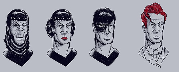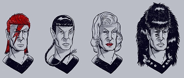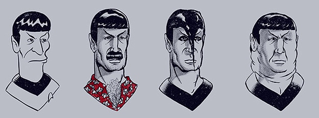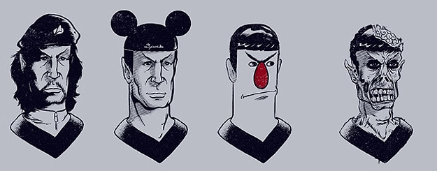 Created by Ramsey Sibaja, these are “The Many Faces of Spock.” These head shots feature Spock in all different roles throughout music and pop culture. I think I like the Princess Leia Spock the best, although the Drag Queen Spock is a close second. The chubby faced Spock is interesting too.