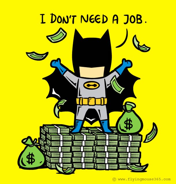 Alright, don’t go thinking I am all serious or anything. These are some of the most hilarious superhero illustrations that we have seen in a while, and they do somewhat shake you up a little thinking. Should I get a part time job on top of my full time job in order to get a little bit of extra cash?