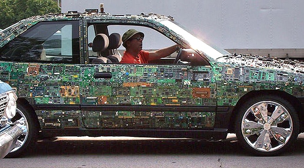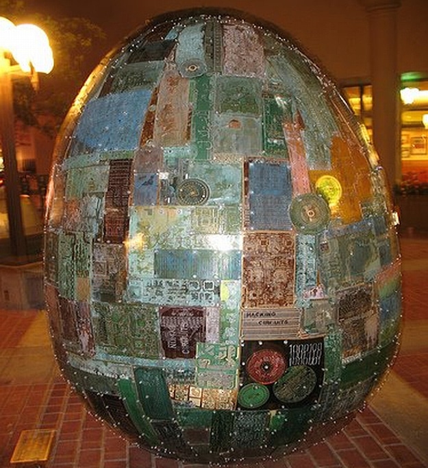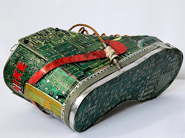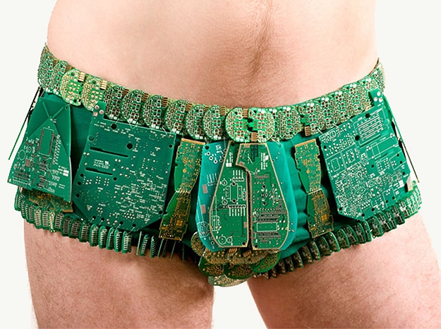 Since I work with computers everyday, I’ve been to many offices where I’ve seen geeks decorate their cubicles with circuit boards. Recently I watched a colleague of mine turn his circuit boards into bookends. It was a really creative design. As you can see from all the examples below, there are many people who are inspired by those green boards we usually keep hidden inside our computers. I hope you enjoy these. The circuit board boxers are my fav. Oh yeah baby… #sexy. LOL
