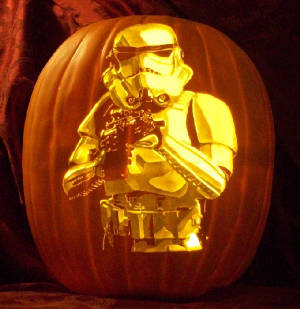 I managed to find 6 pumpkin carvings that you just have to see to believe. They are all about Star Wars, but they are insanely detailed and I couldn’t decide whether I wanted to believe they were carved or just photoshopped. Well, they are neither really. These pumpkins are called “Faux Pumpkins” or “Gemmy Craft Pumpkins,” and they are basically pumpkins wrapped in a canvas that allows them to glow with whatever pattern or picture you want on them making them look incredibly real. If no one had told me, I would have still believed they were carved or at least etched… or something like that. In either case, you have to admit that these are nothing less than amazingly good looking pumpkins!