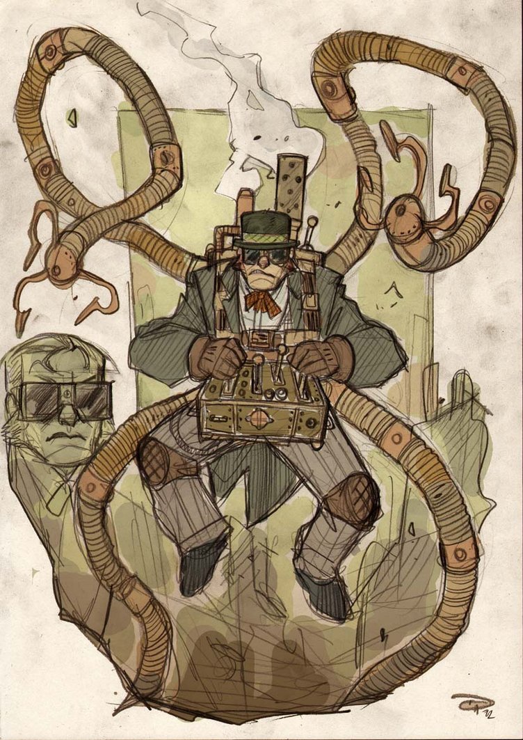Once again, he makes me wonder why this hasn’t been done at Marvel yet! Comic books that feature the X-Men often see the team take trips into alternate dimensions, parallel universes and divergent futures… but the Spider-Man books? Spider-Man Noir, sure. But, is there anything out there, by Marvel, that’s set in an alt-universe with a steampunk aesthetic? Something between Neil Gaiman’s “1602” and the Marvel Noir line of books? Nothing comes to mind (comment below and enlighten me, I’m a glutton for alternate world story lines).