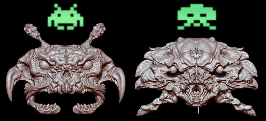 Have you ever wondered what those alien space invaders would look like if that game was created today? Have you ever wondered what one of those aliens looks like up close and personal? Character and creature modeling artist Tom Carruthers did and holy crap, they’re actually scary, like for real.