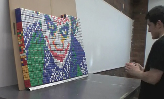 The geek factor is off the chart with this, and I’m inspired by such a wonderful story! What?? You aren’t impressed by this cake? Are you crazy? That’s cool. I have another option for you. I put a Rubik’s Cube Joker creation illustrated in a time-lapse video below that will surely set your mind on fire. Yeah, that’s right, it’s a Joker created with 336 perfectly solved Rubik’s Cubes. David Alvarez, who did this a few years ago, says he didn’t peel the stickers or cheat, he did it all old-school. Nice!! :)