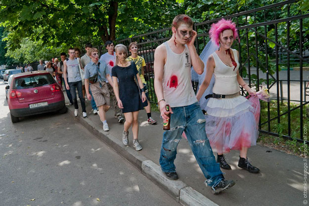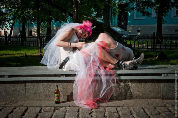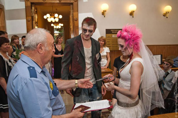 For all you vampire and zombie lovers, I thought you’d appreciate this story. These pictures below are from a real, legit, zombie-themed wedding that took place in Russia a few days ago. I know, right? If we had a WTF category on Bit Rebels, I would put this in it.