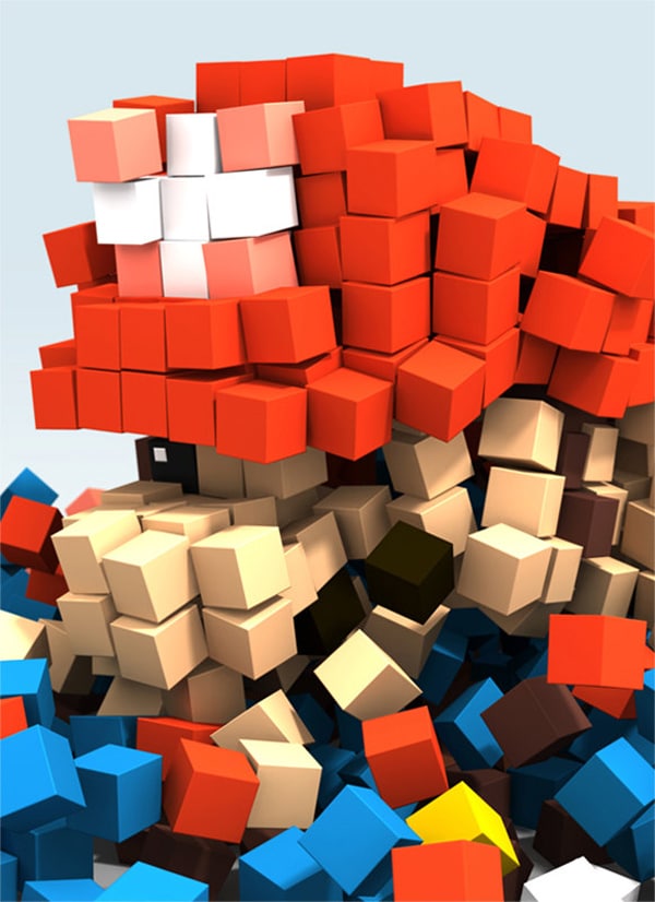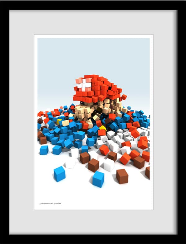 I seem to be on a Mario kick today, but there’s nothing wrong with that, right? Mario is everyone’s favorite plumber, and he will probably continue to be a form of retro inspiration for artists and designers for many years to come. This particular design is very unique though. I’m not an experienced enough artist to know what this technique is called, but it’s like a pixelated Mario created with blocks. It’s abstract enough to make you look twice, but then you immediately see the image is very clearly Mario.