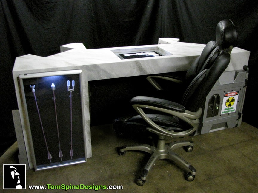It is of course the very desk you work at. Choosing just any desk would be cheating on the geek that makes up your personality, so it would have to be something out of the ordinary. As we all know, to get something out of the ordinary you have to look towards the custom builds. The one to go for is definitely the latest creation of Tom Spina. Tom constantly surprises us with his genius builds, and this one is no different. It’s the awesome Avengers desk custom made for Mark Hall, who frequently happens to auction off his stuff for charity.