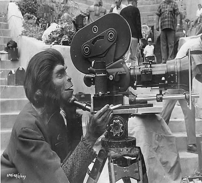 In the first behind the scenes picture below you see a half-dressed Chewbacca wearing sunglasses and smoking. In the 11th picture, you see the set of Inception, which doesn’t help me understand that movie any more. The picture of the people in the water on the set of Titanic remind me of how well the acting is in that movie.