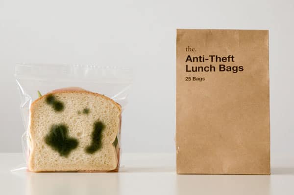 You can understand how excited I was when I found these anti-theft lunch bags on the Internet today. Wow, I have to order some of these right now just because they are so cool. Do you have anyone trying to steal your lunch? Perhaps it’s your coworkers or even your significant other? Now you have a way to protect your food in these bags with green blots, that resemble mold, printed on both sides. The culprits will assume your sandwich is spoiled and will move on to the next person and your lunch will be safe!